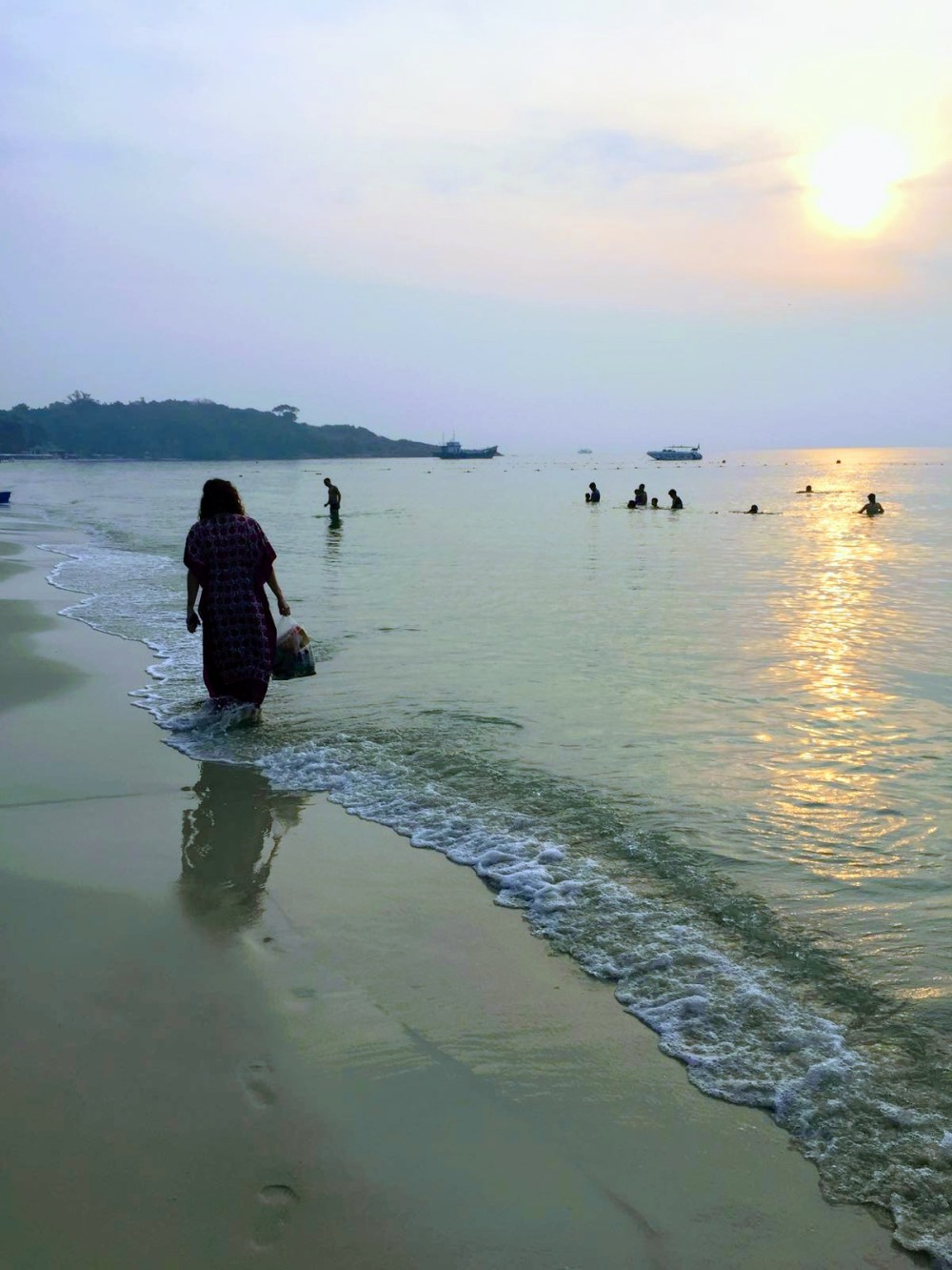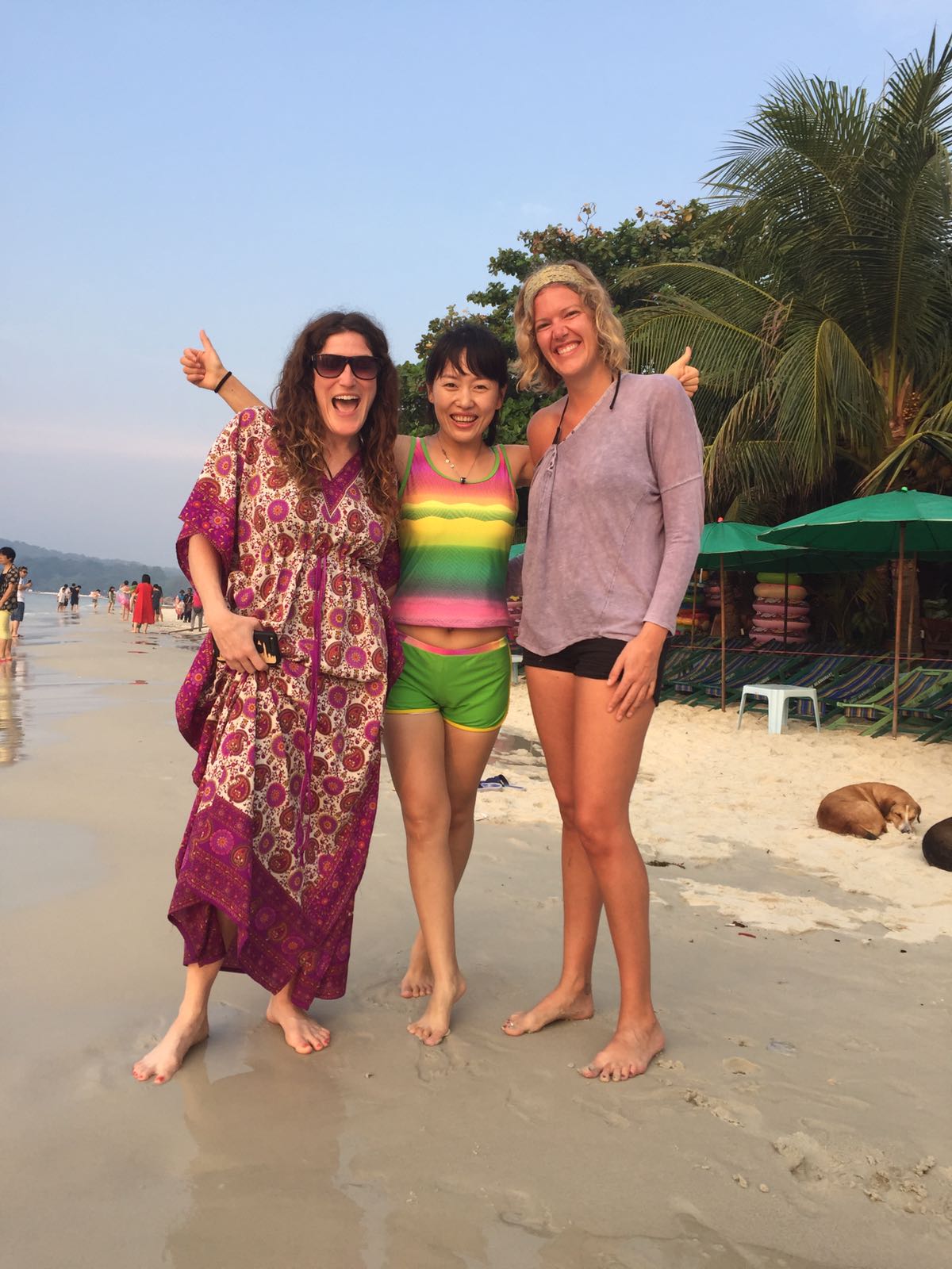 We rose in time for the sunrise.  We were able to reflect on our travels, still in awe that we are on the other side of the world.  We wanted to show our respect and be grateful for being given this opportunity.  The beaches here are beautiful, white sand but unfortunately we noticed the day before that a lot of tourists litter.  We orchestrated our own cleanup repurposing our takeout bag from last night’s dinner.  We were thanked with thumbs up from locals, while some people joined in and others didn’t.  We still got to enjoy the sunrise as we did it.