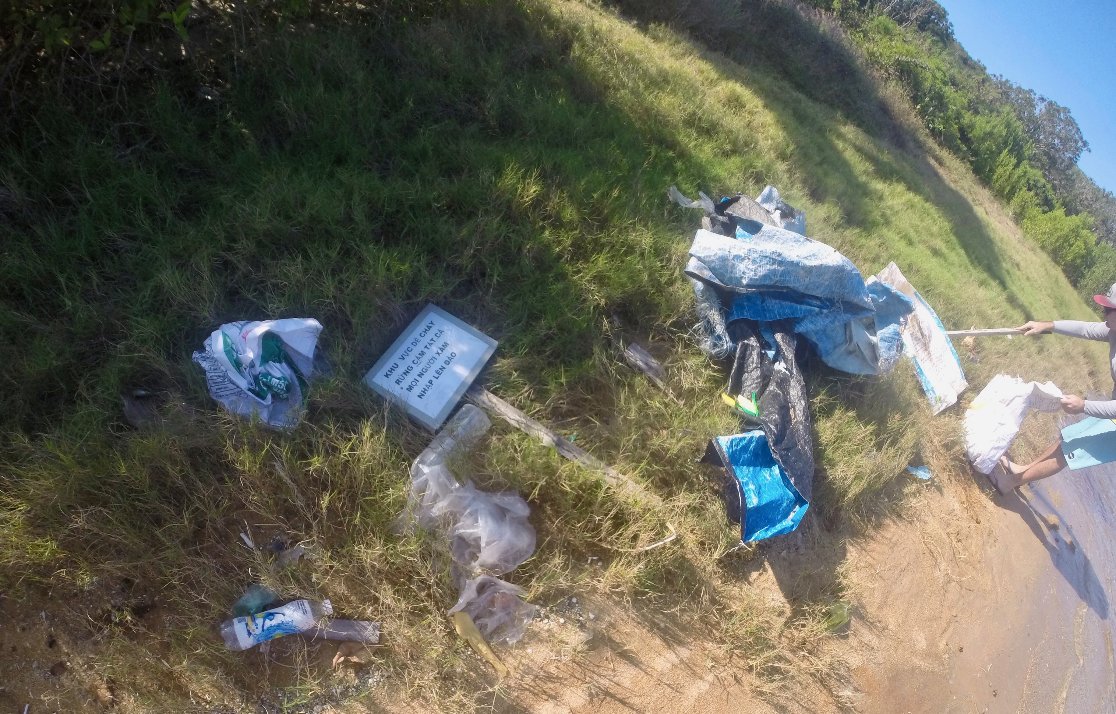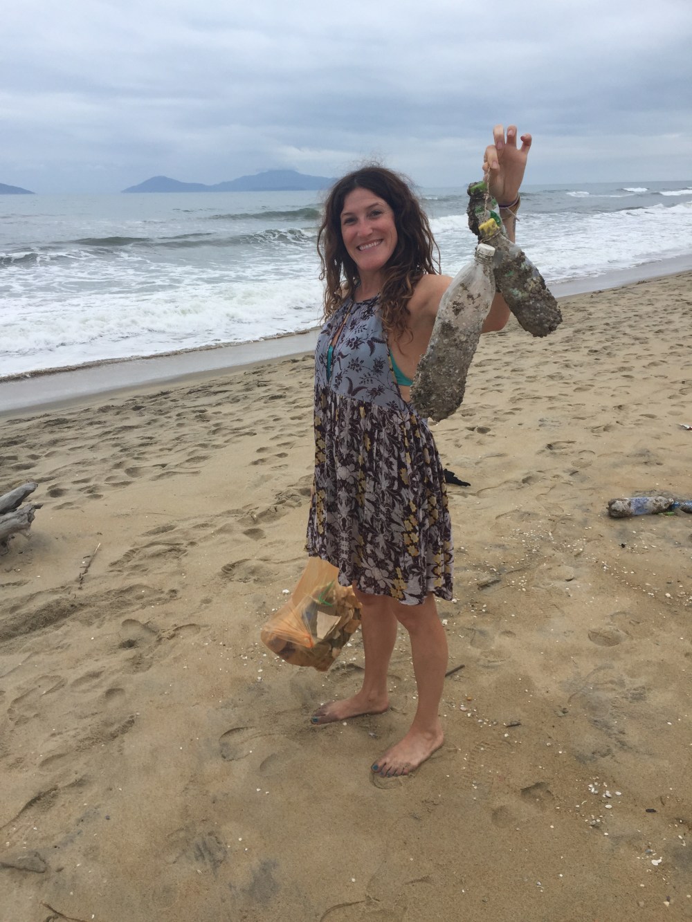 Whale Island is located two hours from the city of Nha Trang. An eco-friendly island, Whale Island seems, at first, to be clean and beautiful but hiking across the island was a different story as there were loads of trash that washed up along shore. Rice bags had also washed up, so we grabbed three of them and filled them up with trash. We hiked back across the island in the extreme heat of the day to get to our resort and dispose of all the trash properly.