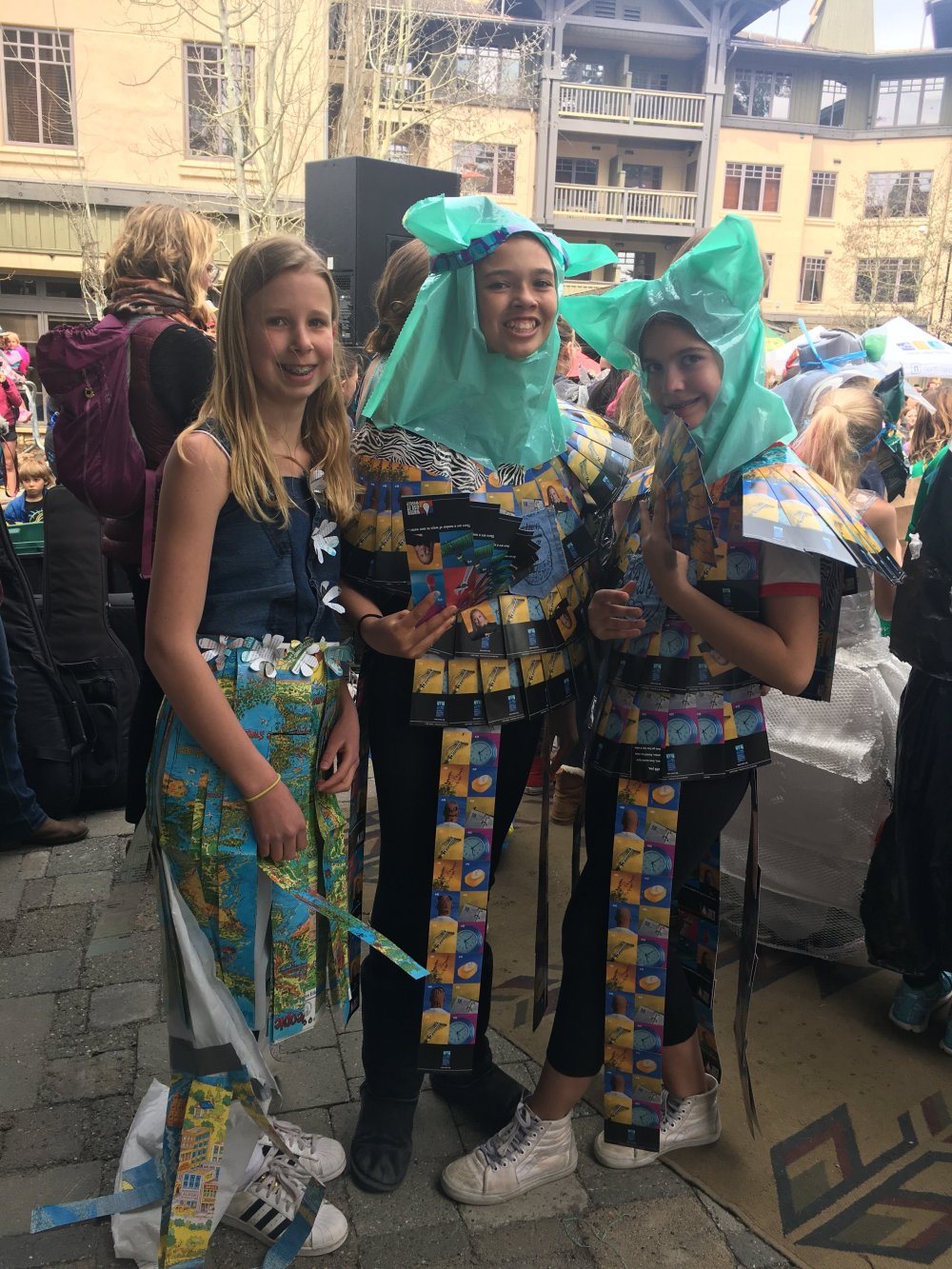 She gave us a summary of the program. The program includes grades K-5 “Green Team,” 6-8th grades “Eco-Action,” and 9-12 “Envirolution” clubs. They are sustainability clubs with interactive projects to empower them and be good global citizens. We love it! The Trashion Show is mostly run by the high schoolers to empower the younger students to conserve in the area of energy efficiency, water conservation, compost, and recycling. The Trashion Show consists of artistic outfits made from trash, that simple, but they each have a commentary piece sending a message of positive action.